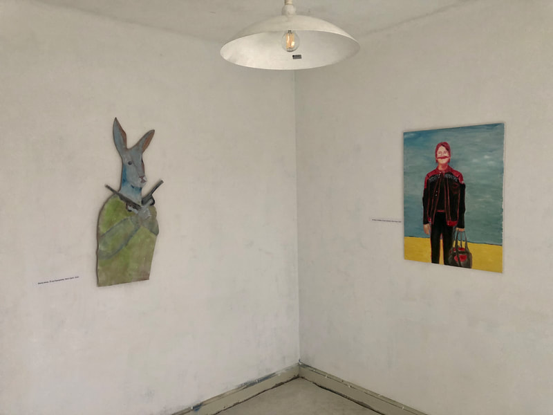Hase mit Freund, 78 cm x 60 cm, Öl auf Leinwand, Reno Sami, 2020